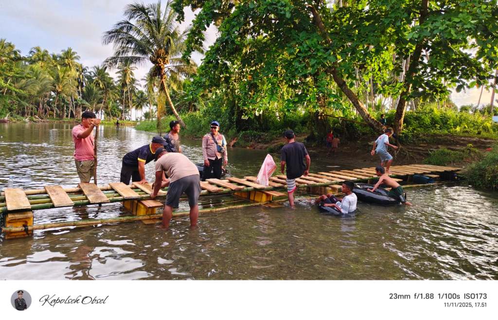 “Setelah banjir, jembatan sementara yang biasa digunakan warga rusak parah. Karena itu, kami berinisiatif membuat rakit penyeberangan agar masyarakat bisa beraktivitas dengan aman,” ujar IPDA Samsudin.