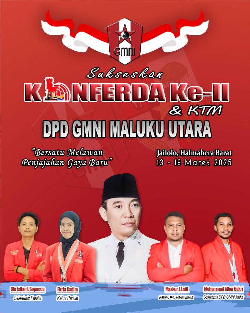 “Konferda merupakan agenda Musyawarah Besar bagi Organisasi GMNI untuk memilih Ketua di tingkat Provinsi, untuk GMNI di Maluku Utara, Konferda Ke-II ini ditetapkan di Halbar, dan dijadwalkan pada tanggal 13-18 Maret 2025,” jelasnya.