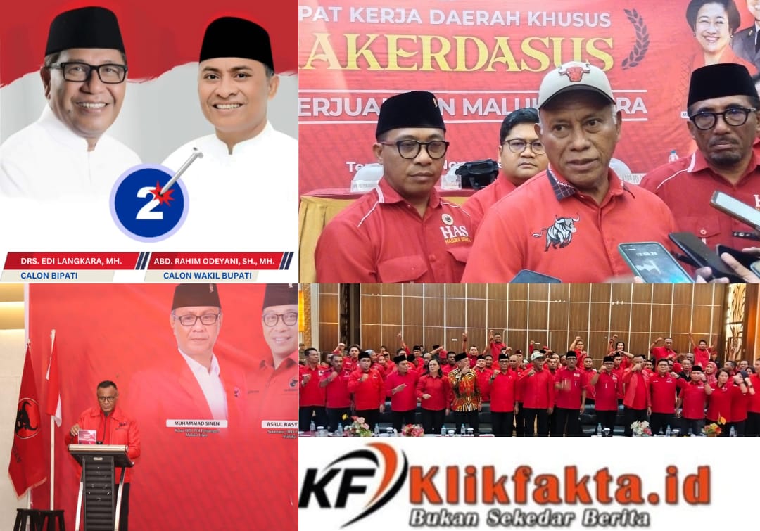Klikfakta.id, TERNATE — DPD Partai PDI-Perjuangan Maluku Utara (Malut) berkomitmen menangkan pasangan calon (Paslon)Bupati dan Wakil Bupati Halmahera Tengah (Halteng) nomor urut 2 Edi Langkara dan Abd. Rahim Odeyani (Elang–Rahim) di Pemilihan Kepala Daerah (Pilkada) Halteng 2024.