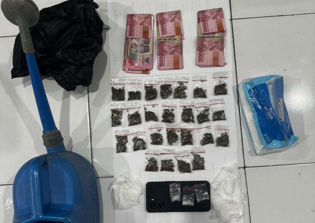 “Dari tangan terduga tersangka, anggota mengamankan barang bukti berupa 1 kantong plastik hitam berisi 25 sachet plastik bening berukuran kecil yang diduga berisi ganja dengan berat bruto 21,88 gram,” jelas Suherman.