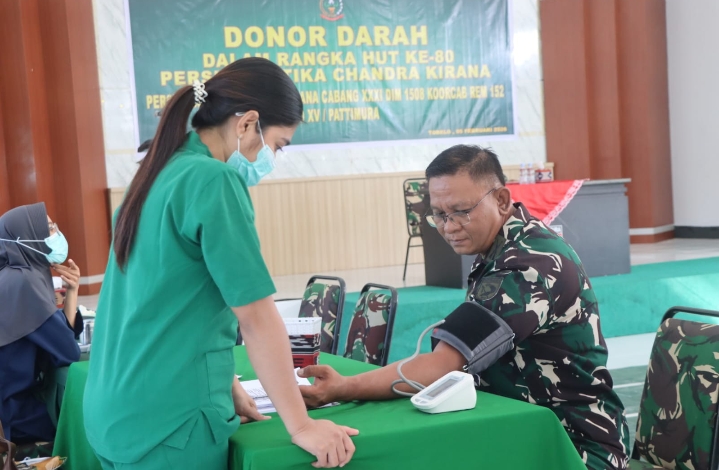 Klikfakta.id,HALUT– Semangat kemanusiaan kembali ditunjukkan Kodim 1508/Tobelo melalui kegiatan donor darah bersama Persit Kartika Chandra Kirana (KCK) Cabang XXXI dalam rangka memperingati Hari Ulang Tahun (HUT) ke-80 Persit KCK. Kegiatan berlangsung di Aula Kodim 1508/Tobelo, Jalan Ir. Hein Namotemo, Desa MKCM, Kecamatan Tobelo, Selasa (27/01/2026).