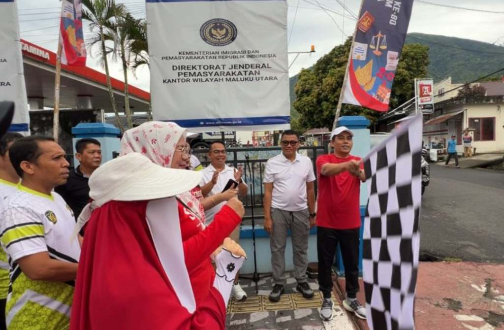 Kakanwil Kemenkum Malut, Budi Argap Situngkir memimpin langsung jalan santai mengungkapkan apresiasi atas kolaborasi yang dibangun. Hal itu, sebagai bentuk kebersamaan jajaran Insan Pengayoman yang telah bertransformasi.