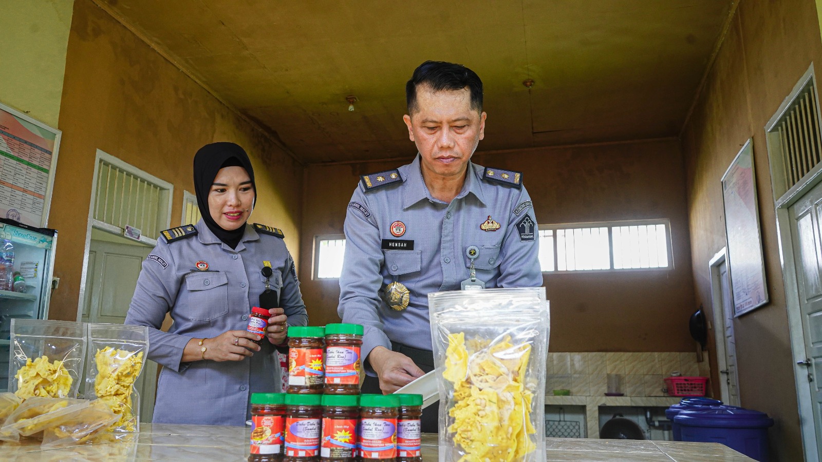 Beberapa produk warga binaan LPP Ternate yang dilihat langsung oleh Hensah, di antaranya sambal roa, tas rajut, dan keripik. Produk tersebut merupakan hasil karya warga binaan LPP Ternate melalui program pembinaan kemandirian.