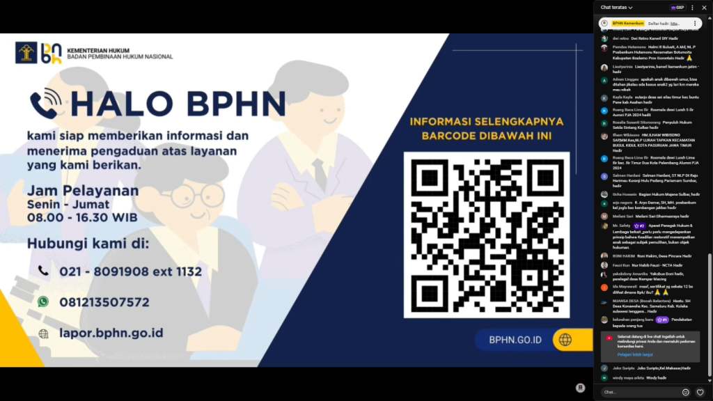 Kegiatan ini dilaksanakan secara virtual melalui kanal YouTube BPHN Kemenkum pada Kamis (23/10/2025).
