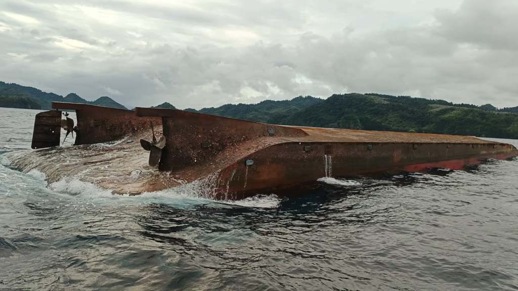 Kapal Tongkang Terbalik di Perairan Kayoa Barat Halmahera Selatan
