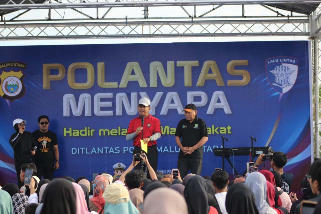 Kegiatan yang digelar Ditlantas Polda Malut ini diisi dengan Polantas menyapa, hadir melayani masyarakat, dan menyampaikan pesan kamseltibcarlantas diantaranya;