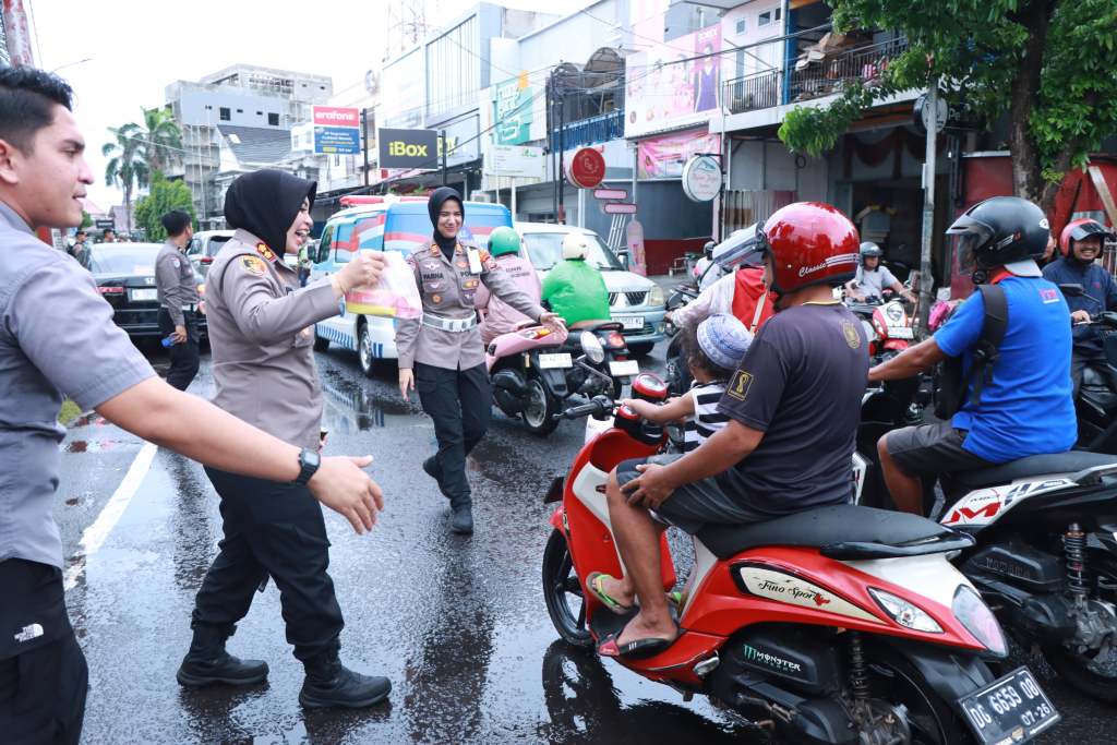 Pembagian takjil yang digelar Polres Ternate dalam rangka meningkatkan kepedulian Polri kepada masyarakat yang menjalankan ibadah puasa sekaligus mempererat silaturahmi di bulan suci Ramadhan, 1447 H, Tahun 2026.