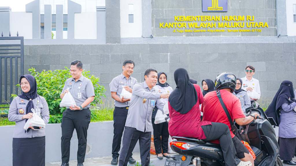 Klikfakta. id, TERNATE– Dalam rangka menyemarakkan bulan suci Ramadan, Kantor Wilayah (Kanwil) Kementerian Hukum (Kemenkum) Maluku Utara (Malut) menggelar kegiatan berbagi makanan berbuka puasa atau takjil kepada masyarakat.