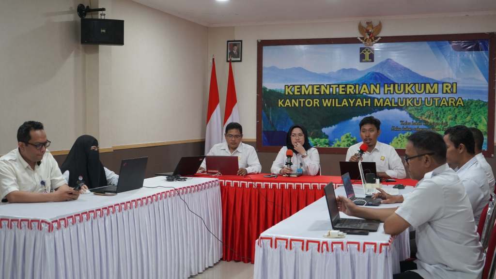 Kegiatan berlangsung di Aula Gamalama Kanwil Kemenkum Malut dan secara daring melalui Zoom Meeting.