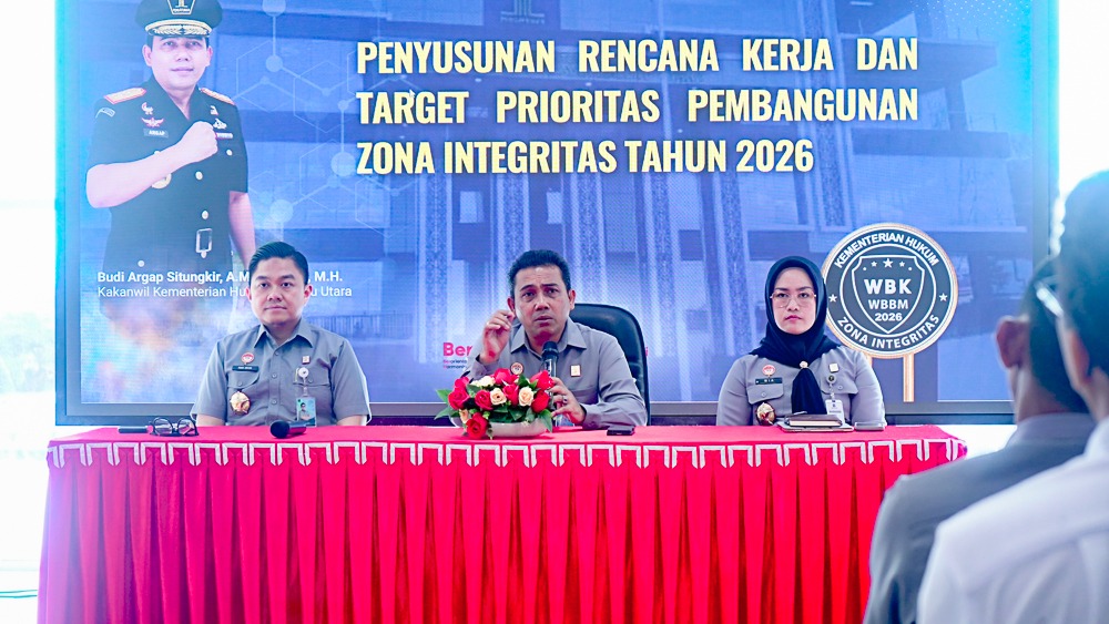 Kakanwil Kemenkum Malut, Budi Argap Situngkir dalam arahannya menyampaikan pembangunan zona integritas di tahun 2026 perlu menjadi perhatian bersama, khususnya terkait peningkatan standar kualitas pelayanan kepada masyarakat.