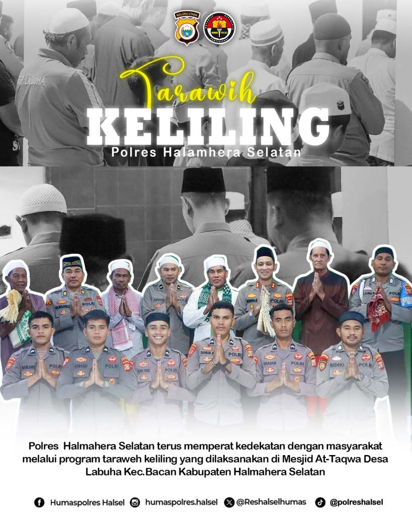 Klikfakta.id, HALSEL – Polres Halmahera Selatan, Maluku Utara semakin mempererat tali silaturahmi antara kepolisian dengan masyarakat di wilayah hukum polres Halsel melalui program tarwih keliling.