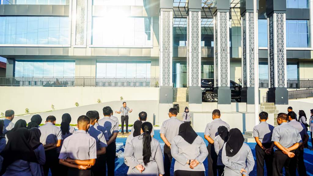 Klikfakta. id, TERNATE-– Kepala Kantor Wilayah (Kakanwil) Kementerian Hukum (Kemenkum) Maluku Utara (Malut), Budi Argap Situngkir (BAS), memimpin langsung pelaksanaan apel pagi yang digelar di Lapangan Apel Kantor Wilayah (Kanwil) Kemenkum Malut pada Senin (20/4/2026).