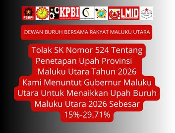 Klikfakta. id, TERNATE — Berbagai organisasi buruh dan rakyat di Maluku Utara secara tegas menolak penetapan Upah Minimum Provinsi (UMP) dan Upah Minimum Sektoral Kabupaten/Kota (UMSK) Tahun 2026 yang ditetapkan oleh Gubernur Maluku Utara, Sherly Tjoanda Laos.