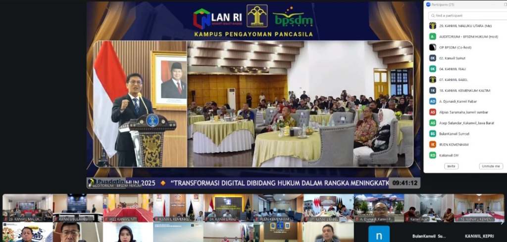 Klikfakta. id, TERNATE– Kepala Kantor Wilayah (Kakanwil) Kementerian Hukum (Kemenkum) Maluku Utara (Malut) Budi Argap Situngkir bersama jajaran turut mengikuti kegiatan “Pelepasan Pelatihan Kepemimpinan Nasional (PKN) Tingkat II Angkatan XIV Tahun Anggaran 2025” yang diselenggarakan oleh Badan Pengembangan Sumber Daya Manusia Hukum (BPSDM) Republik Indonesia, secara daring Jum’at (17/10/2025).