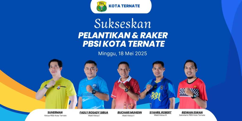 Pelantikan pengurus PBSI Kota Ternate untuk 5 tahun kedepan tersebut, akan berlangsung di Royal Resto Ternate, Ahad 18 Mei 2025.