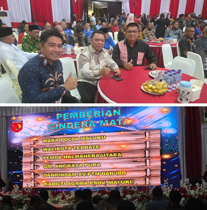 Pada rangkaian acara, Bupati Halmahera Utara turut menyerahkan cinderamata kepada Mayjen TNI Putranto Gatot Sri Handoyo, bersama sejumlah pejabat lainnya seperti Wakapolda Maluku, Wali Kota Ternate, dan unsur Forkopimda.