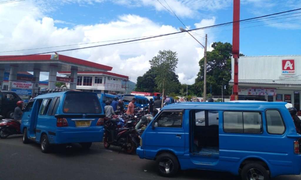 Ilustrasi antrian pengisian BBM di salah satu SPBU di Kota Ternate ( foto : Posko Malut)