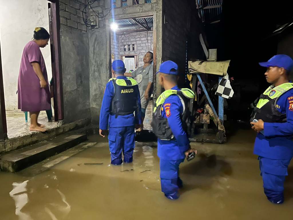 Selain melakukan pemantauan situasi, personel Polairud juga berkomunikasi langsung dengan warga untuk memastikan kondisi mereka pasca banjir.