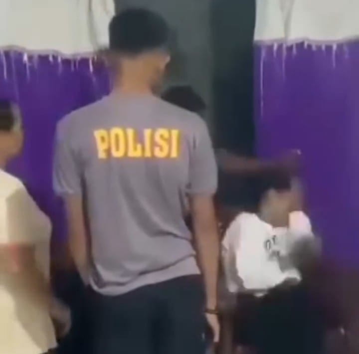 Berdasarkan informasi beredarnya video kekerasan tersebut diduga salah satu oknum polisi berpakaian setengah dinas juga turut menyaksikan.
