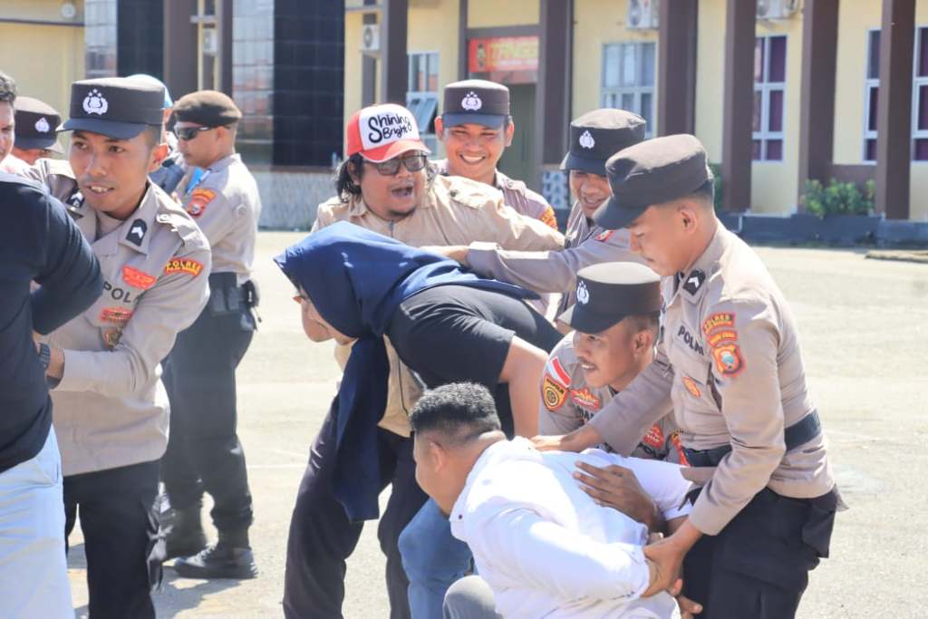 Dalam kegiatan simulasi penanganan massa aksi unjuk rasa yang berlangsung meriah, dimana pada pelaksanaannya seluruh personil dilibatkan untuk mengambil perannya masing-masing.