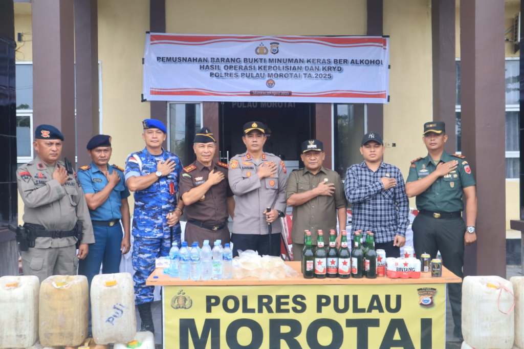 Klikfakta.id, MOROTAI – Kepolisian Resor (Polres) Pulau Morotai, Maluku Utara menggelar pemusnahan barang bukti minuman keras (Miras) jenis cap tikus sebanyak 342 liter, pada Selasa 29 April 2025.
