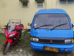 Barang bukti yang diamankan antara lain satu unit mobil angkot Mitsubishi warna biru dan satu unit motor Kawasaki 250cc merah, sesuai dengan laporan awal.