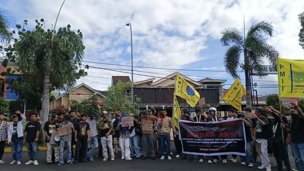 Aksi demontrasi yang digelar didepan Polres Ternate, pada Selasa (9/12/2025) dengan membawa spanduk bertuliskan “Mendesak Polres Ternate Mempercepat Penanganan Kasus Kekerasan Seksual” sebagai bentuk protes terhadap lambannya proses hukum.