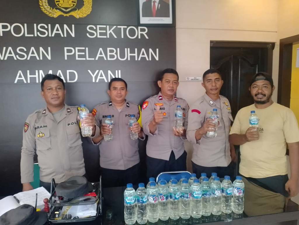 Dalam razia tersebut, personel piket Polsek Kawasan Pelabuhan Ahmad Yani Ternate menemukan satu dus Aqua yang berisi 24 botol minuman keras jenis cap tikus dengan ukuran 600 ml.