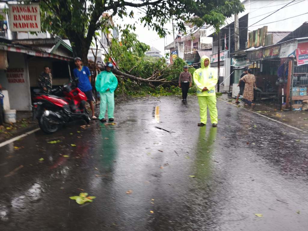 langkah cepat personel Satlantas Polres Ternate dalam rangka menanggapi adanya pohon tumbang yang sempat menghambat arus kendaraan di wilayah tersebut.