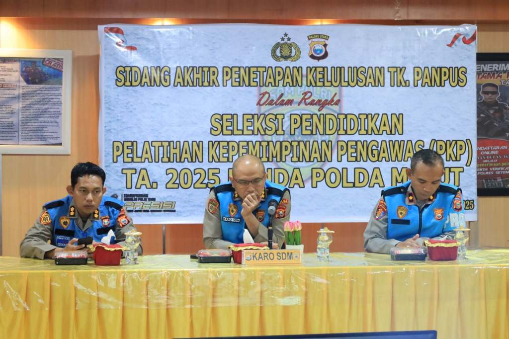 Kikfakta.id, TERNATE – Biro Dalpres SSDM Polri umumkan sadang kelulusan selaksi Pelatihan Kepemimpinan Pengawas (PKP) untuk Pegawai Negeri Sipil (PNS) Polri Tahun Anggaran 2025 Polda Maluku Utara, pada Kamis 13 Februari 2025.