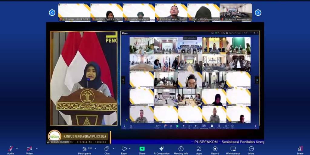 Sosialisasi dibuka oleh Kepala BPSDM Hukum, Gusti Ayu Putu Suwardani, yang menegaskan bahwa penilaian kompetensi memiliki peran strategis dalam membangun kualitas ASN Kementerian Hukum.
