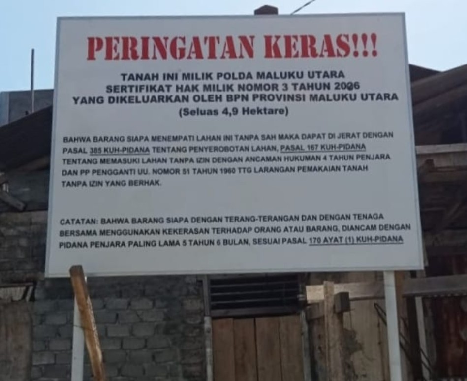 Zulfikran merujuk Surat Ditreskrimum Polda Maluku Utara tertanggal 6 Januari 2026, yang secara eksplisit menyebut penyelidikan dugaan tindak pidana penyerobotan tanah, penerapan Pasal 385 jo Pasal 167 KUHP, dengan dasar Laporan Polisi dan Surat Perintah Penyelidikan.