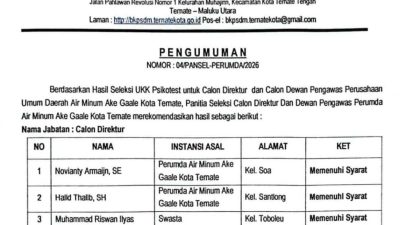 Seleksi Dirut Perumda Ake Gaale Ternate