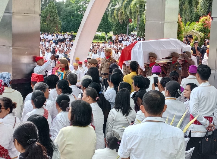 Upacara pelepasan yang berlangsung pada Senin (8/12/2025) pagi itu dihadiri ribuan pelayat dari berbagai kalangan, mulai dari pejabat daerah, tokoh agama, tokoh adat, hingga masyarakat umum.